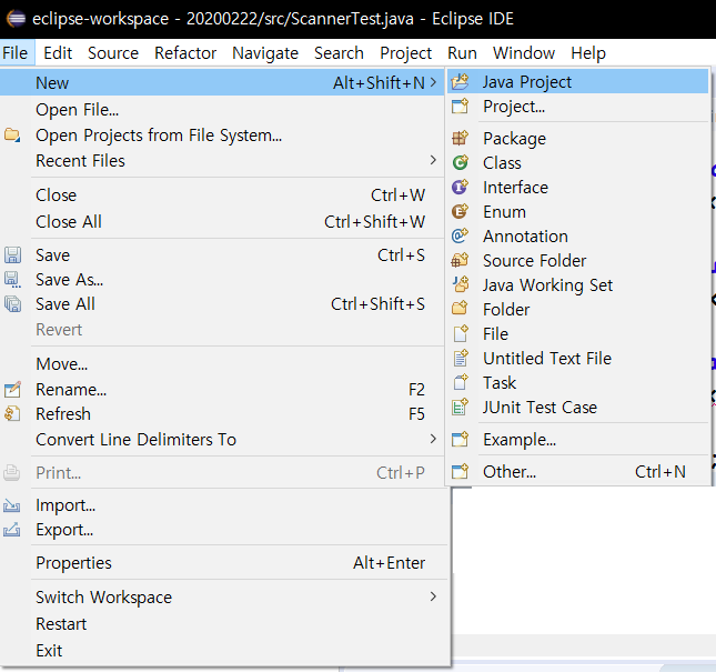 자바 프로젝트 생성: