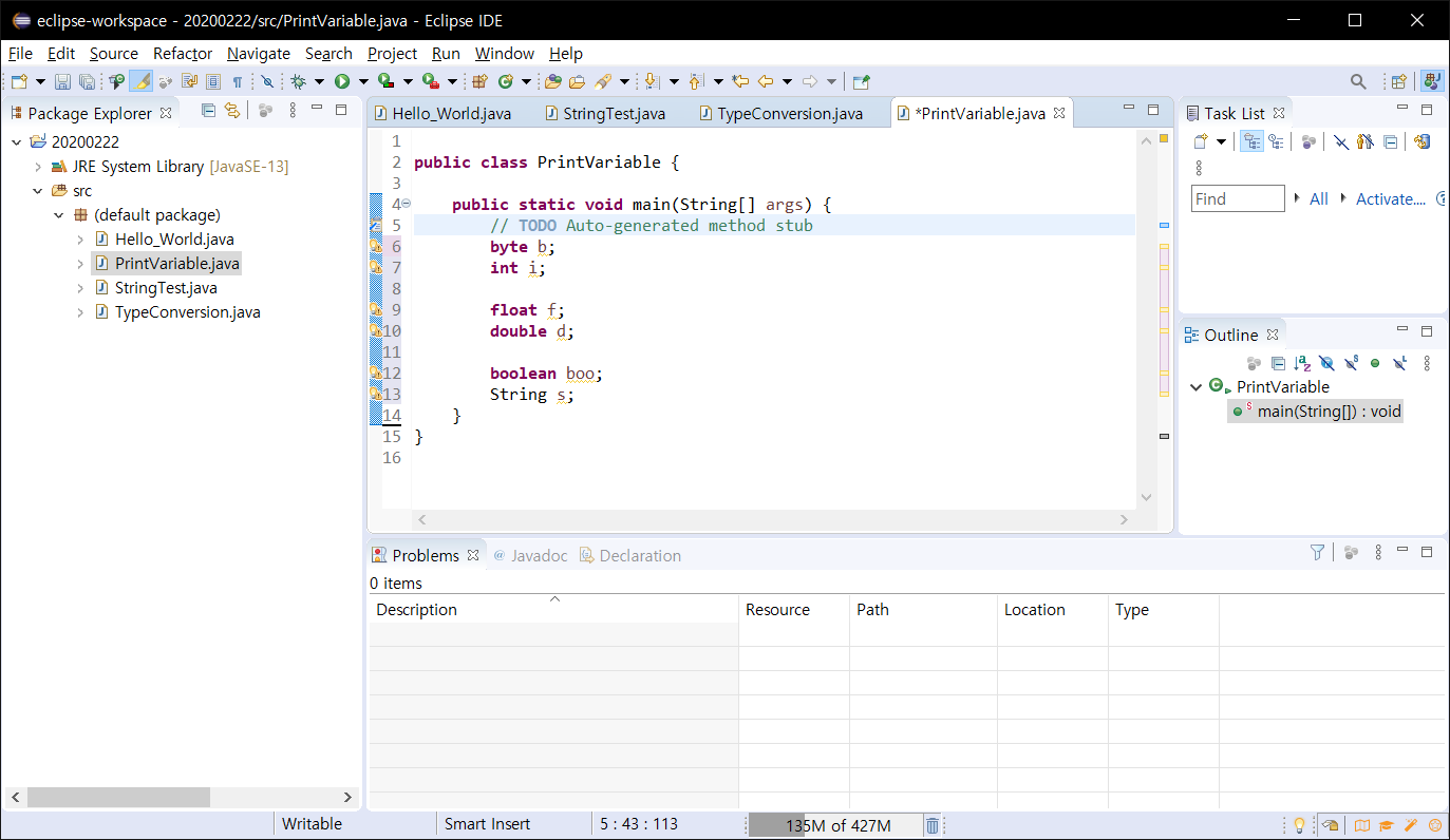 | 4. Java 자료형 설명 / 자료형 변환(Type Conversion) (0) | 2020.02.22 |