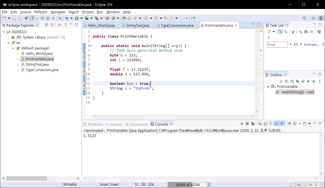 | 2. 자바 프로젝트/클래스 생성 및 문자열 출력 (0) | 2020.02.22 |